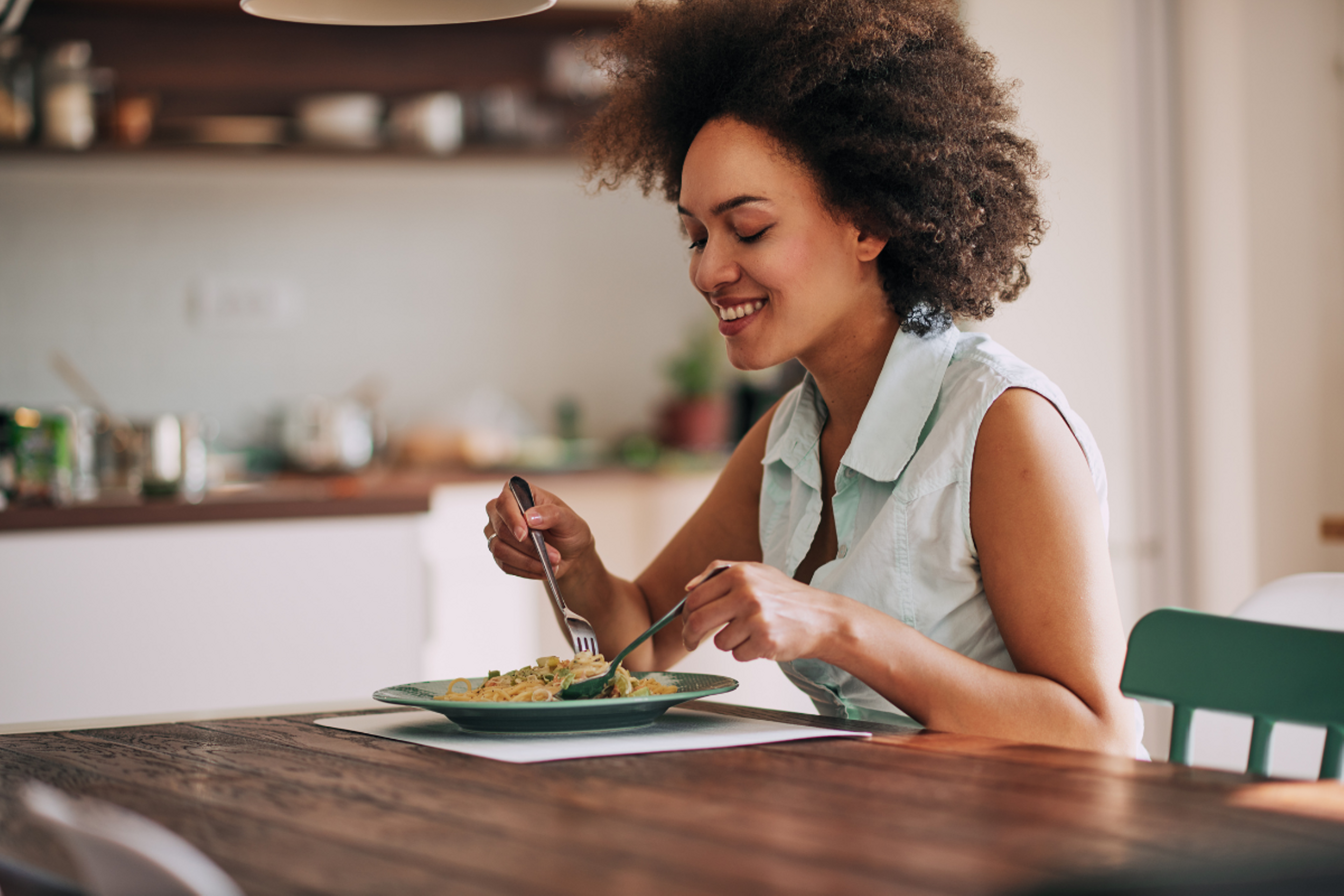 woman eating pasta
